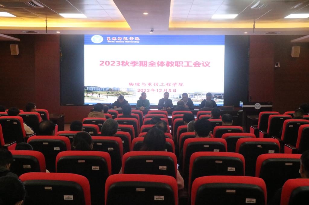 12月5日下午,我院于我校东校区教师能力发展中心401-402室召开2023年秋季期全体教职工会议。我院党委书记陈铁军,院长巫钊,党委副书记覃艳超,副院长罗志荣、田欢欢以及全体教职工参加会议,会议由陈铁军主持。